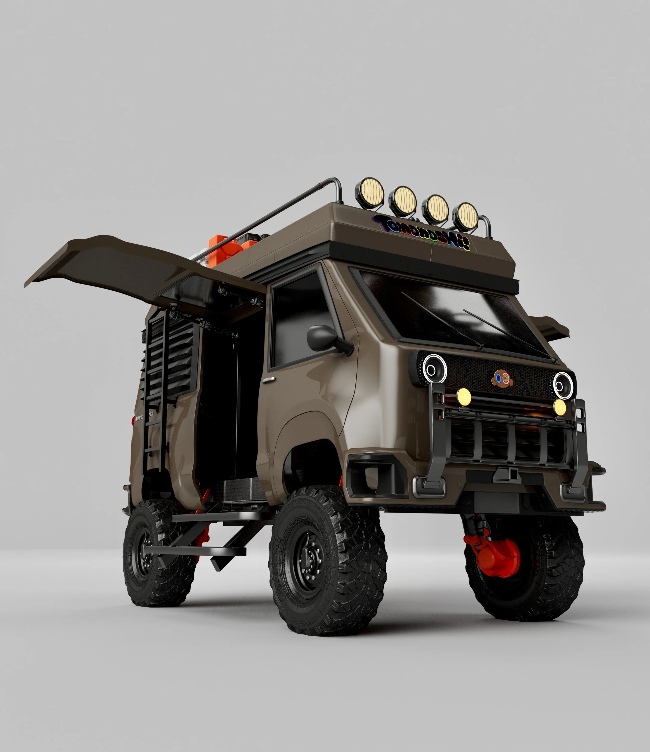 The TOMONOSHi! Adventurer is designed for explorers and adventurers who seek a reliable and versatile vehicle for their journeys. This vehicle cater to explorers who value tactile interaction, advanced technology, and rugged design, making them perfect for extreme conditions, including a zombie apocalypse.